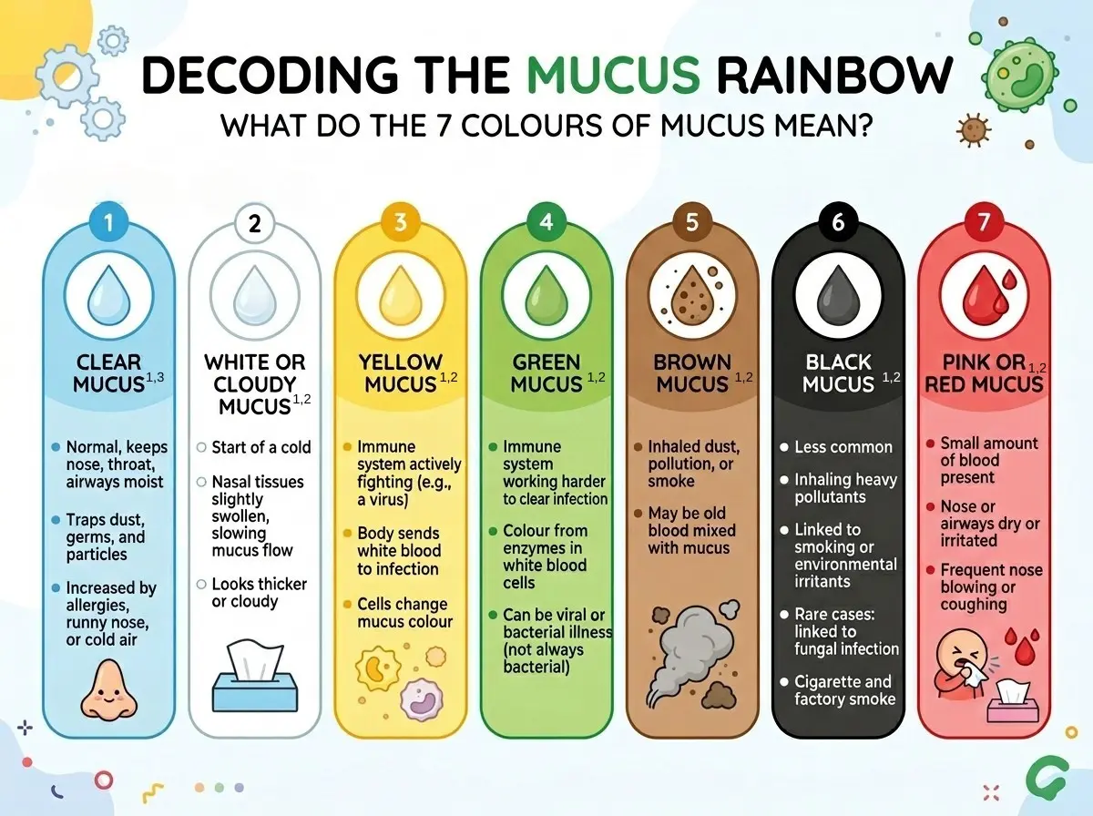 Your body has its own way of fighting off infections, and mucus is part of that process. In many cases, a changing “rainbow” of mucus is simply part of getting better and signal that your immune system is doing its job.