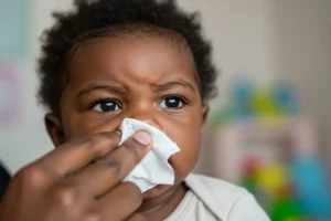 - Steam or saline drops for blocked noses, or try place sliced onion near your baby’s bed.
